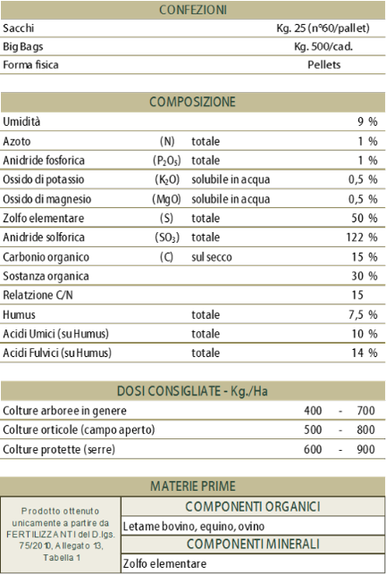 Considerato il re dei concimi, costituisce un materiale a sé di difficile confrontabilità a motivo di un elevata presenza di composti a lenta degradabilità. Contribuisce a promuovere l’aggregazione delle particelle terrose e la stabilità del glomeruli formati nel lungo periodo; l’effetto nutritivo si esplica per più annate, dopo quella di somministrazione, permettendo anche il rilascio degli altri elementi contenuti in essa quali Azoto ammoniacale, Fosforo, Calcio, Magnesio, Potassio e microelementi come ioni liberi o complessati: quindi è bene apportare letame ogni anno per mantenere costante i benefici sia da ammendante che da nutriente, diventando così un vero concime a lenta cessione.