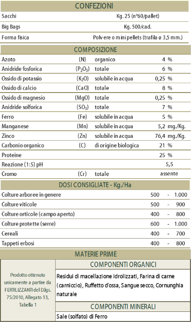 base di matrici organiche naturali, quali proteine nobili, amminoacidi e